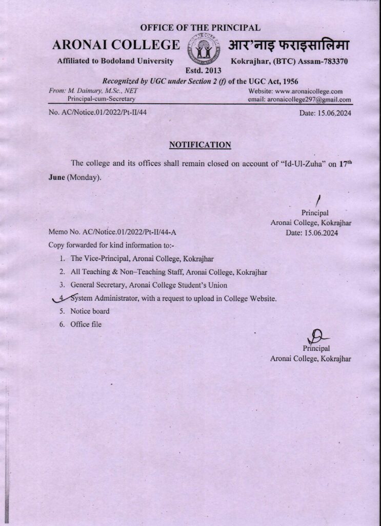 Notice Alteration Of BA/BSc 1st Semester Examination 2021(held in 2022) Byaronai college May 21, 2022May 21, 2022