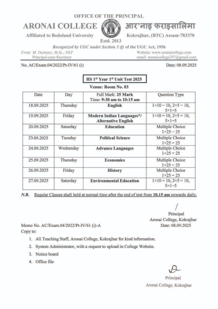 Notice UG 5th semester (Batch 2021) examination form fill-up (Regular) Byaronai college November 6, 2023November 6, 2023
