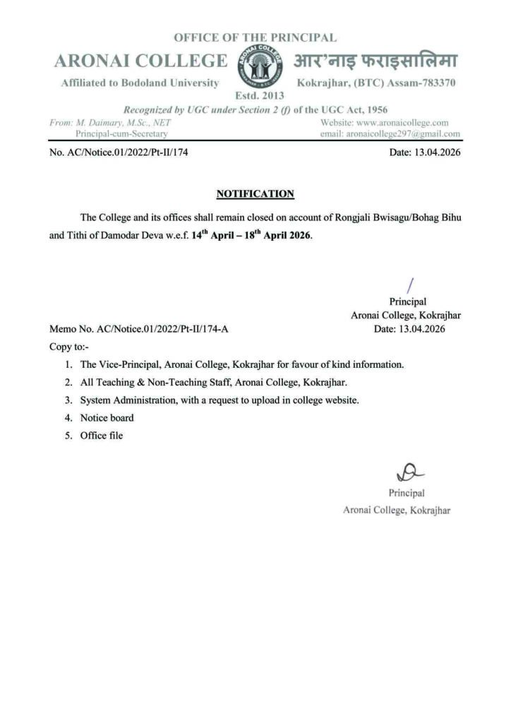 Notice Recruitment notification for various teaching position (Contractual) Byaronai college July 10, 2023July 10, 2023